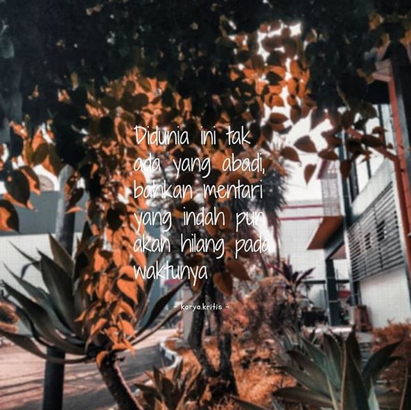 Ujian dan cobaan yang hadir ditujukan kepada manusia agar kita menjadi lebih bijak menjalani hidup. Dan, kata kata bijak menyentuh hati dapat menyempurnakan proses itu. Segala sesuatu yang berlebihan itu tidak baik. Kau buat remuk seluruh hatiku. Hidup memang tak selamanya dalam keadaan senang. Patah hati umumnya dikaitkan dengan kehilangan seseorang seperti salah satu anggota keluarga atau pasangan hidup, kehilangan orang tua, anak, orang yg dicintai atau sahabat dekat bisa, bahkan binʌtang peliharaan sekalipun. 15 ungkapan kata kata sedih patah hati untuk mewakili rasa sakit yang tak terucap. Seandainya tidak ada badai, pelangi tidak akan muncul. Namun entah kenapa, terkadang rasa sakit yang timbul sangat menyiksa dan dapat membuat kita putus asa. Anda pasti akan berusaha dan mencoba untuk mulai menguranginya secara perlahan. Tidak melulu soal cinta, patah hati juga kerap muncul dalam hubungan pertemanan, lingkungan pekerjaan, maupun hal lain. Fiersa besari cinta tak harus memiliki. Kata bijak kehidupan terkadang dapat memberikan sebuah motivasi yang dapat membangkitkan semangat untuk menjadi yang lebih baik dan terbaik dalam menjalani hidup.